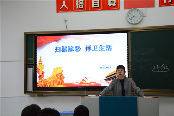 活动中,班主任首先通过多媒体向同学们详细解读了中共中央、国务院发出的《关于开展扫黑除恶专项斗争的通知》。让同学们知道了什么是黑恶势力以及什么行为可以规定为黑势力行为。接下来,班主任向同学们阐述了在全国开展扫黑除恶的重要意义。让同学们认识到为了维护社会和谐稳定,扫黑除恶已经刻不容缓。最后,班主任提醒同学们,当自己的权利受到黑恶势力的侵害时一定要相信国家,相信法律,及时报警并且运用法律武器捍卫自己的正当权利。