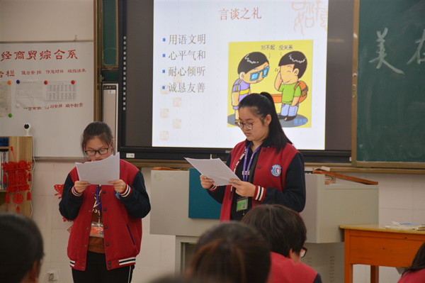 4月22日上午第一节课,财贸系各班利用班会课时间组织开展了“美在言谈、提升修养”主题班会活动。本次主题教育活动的开展,让学生认识到文明礼貌用语的重要性,教育学生在日常生活中正确运用文明用语,努力提高自己的文明礼仪修养,让学生成为文明礼仪的宣传者和践行者,强化学生对正确使用文明用语的道德认知。