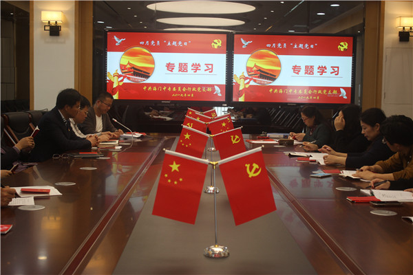 4月23日下午三点二十分,行政支部党员在行政楼12楼百度厅参加了4月份党员“主题党日”活动。、校长徐忠、副校长周桂岐、周卫星、王小辉等党委委员以普通党员的身份参加了双重组织生活会。支部书记洪龚明主持本次活动。本次党日活动的主题是“传承红色基因、培育家国情怀”。 会议的第一个会议是做好规定动作。全体支部党员集中交纳党费,增强政治觉悟;集体诵读党章《总纲》部分,回望党员初心。 其次,洪龚明主任组织支部党员认真学习了海门组织部部长高洪军在全市组织系统工作会议上的讲话。高部长系统总结了2018年取得的成绩,重点指出了党员干部中存在的突出问题。其中就扫黑除恶专项斗争提出了三点要求,第一,扫黑除恶专项斗争也是组织系统的主责主业。第二,要以斗争精神落实扫黑除恶专项斗争各项任务。第三,要强化扫黑除恶专项斗争政治担当。 会议的第三项议程是悟初心、谈初心和践初心。支部党员张海华、范丽萍和姜彦辰三位同志进行学习交流。张海华和范丽萍结合自身中层岗位对现阶段工作进行了得与失两个方面的总结交流,姜彦辰同志则是根据思政课教师这个角色进行了心得交流,三位同志都表示在今后的工作中不断获得更大的突破。 最后一个议程,推进4月“讲政治、讲大局、讲规矩、讲担当”活动。洪龚明指出,4月11日自徐校长全校层面进行活动动员以来,全体教职工积极行动,作为行政支部党员更应树立标杆意识,率先垂范,在思想灵魂深处给人生高定位,在专题学习活动中起到引领作用。 本次活动严格按照上级要求,本着注重实效、不走过场的原则开展,做好规定动作,取得了良好成效。  、