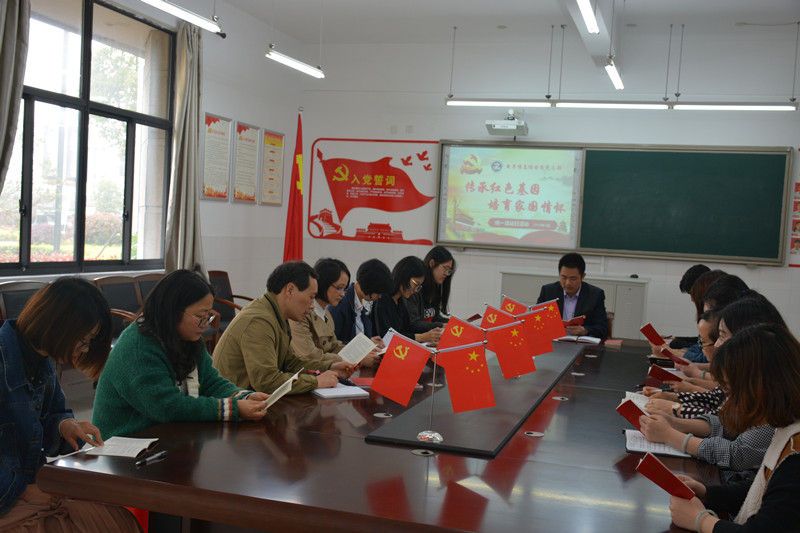 支部书记带领全体党员认真学习“讲政治、讲大局、讲规矩、讲担当”专题教育内容。强化党员的政治意识、大局意识、规矩意识和担当意识,推动广大党员教师弘扬高尚师德、潜心立德树人、自觉维护学校形象、营造风清气正的教育生态。