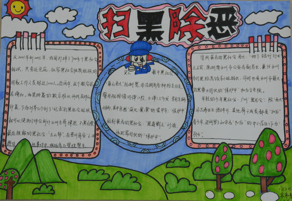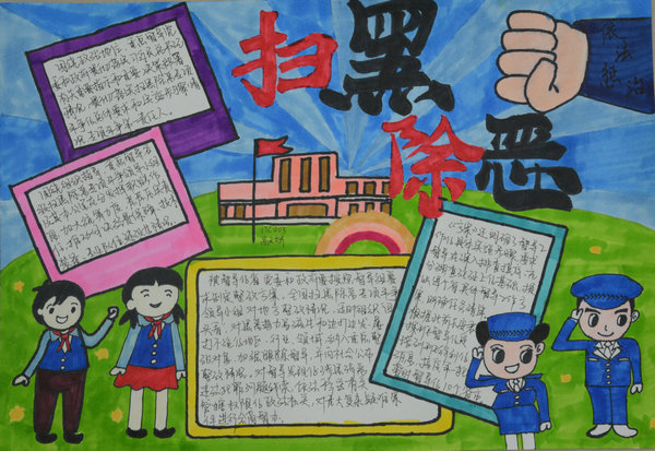 为进一步加大对扫黑除恶专项斗争工作的宣传力度,培养青少年学生的法制意识,近日,信息系开展了以“扫黑除恶 弘扬正气”为主题的手抄报评比活动。