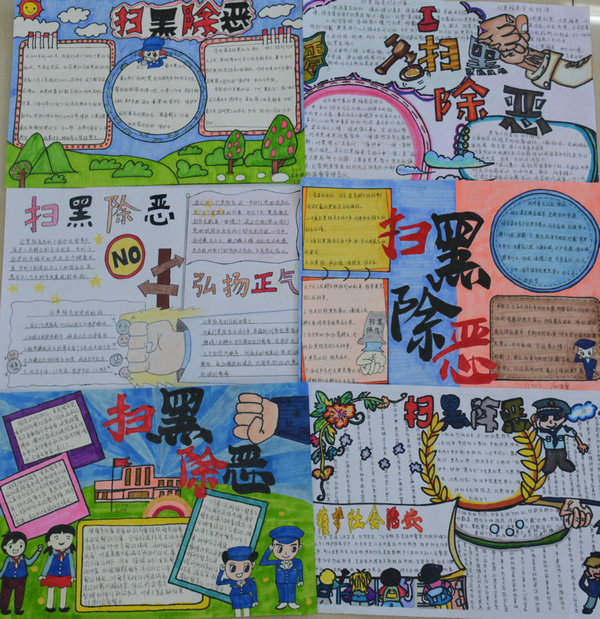 通过此次手抄报评比活动,进一步加强了对扫黑除恶专项斗争的宣传教育,防止黑恶势力向校园渗透,有利于构建平安和谐校园。(范小培)