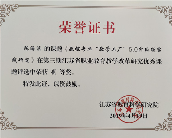 4月22日-23日,第四期江苏省职业教育教学改革课题研究和管理培训(第二批)在徐州顺利召开。培训活动由江苏省教育科学研究院主办,徐州市教育局承办。我校钟蔚、陆建华、黄彩萍、黄权、范生琴、陆慧六位教师参加了本次培训。 开幕式上,江苏省教育科学研究院职教所所长方建华宣读了第三期教改课题优秀成果名单,我校崔志钰的课题《中等职业学校微型游戏项目多样化教学的实践研究》和陈海滨的课题《数控专业“教学工厂”5.0升级版实践研究》分获优秀课题评选一、二等奖。 培训期间,我校教师听取了天津教科院职教所研究员耿洁博士、江苏省教育科学研究院职教所所长方建华博士、江苏省教育科学研究院职教所副研究员陈向阳博士的专题报告,以及南通市教育科学研究院刘兵兵、徐州财经高职校张威、连云港中医药高职校陈敏、扬州市教科院陈金国的优秀课题分享和课题管理的经验介绍。 江苏省教育科学研究院王新国博士也对第四期省教育教学改革研究课题工作进行了部署安排,立项课题2019年7月底前要完成开题论证工作,要求加强课题过程管理,严格执行“省、市、校”分级分类统筹集中管理制度,研究的各类报告要严格按照要求规范完成。 第四期江苏省职业教育教学改革课题,我校有6项课题立项,其中重点课题2项。本次培训必将进一步提高我校第四期教改课题的研究质量和水平,使教学研究更好地服务于教育教学实践。