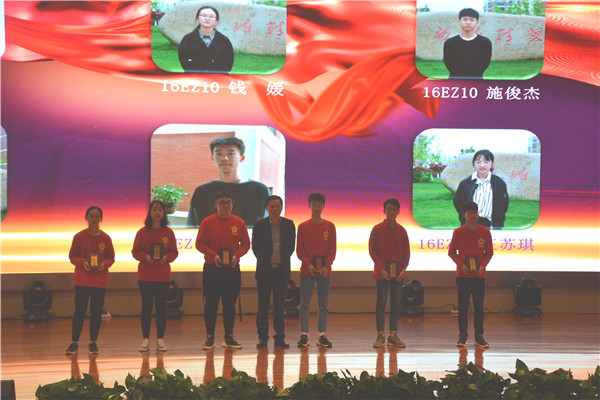 表彰颁奖立标杆。党委书记宋健宣读2019届技能高考标兵、2019届对口单招优秀毕业生表彰决定,学校领导为获奖学生颁发证书并合影留念。一个优秀学生就是一面奋勇争先的旗帜,要想形成优秀的团队就必须要有闪光的个人加以示范和引领。
