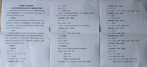 根据学校2019 年对口单招文化统考送考工作会议及考务协调会议精神,为切实做好对口高考的后勤保障工作,4 月17 日上午,在A楼谷歌厅,后勤工作部专门召开2019 年对口单招考试饮食安全专题会议。学校副校长周卫星,后勤工作部副主任施锡斌及负责本次高考饮食的管理人员参加了本次会议。 为落实好本次后勤保障工作,后勤工作部高度重视,精心制订了《江苏省海门中等专业学校“2019 年江苏省对口高考文化统考”餐饮接待工作方案》。施主任先带领大家共同研读方案内容,并要求会后专门再召开全体工作人员会议,进一步贯彻落实方案。施主任指出,高考牵动着每个家庭,每个考生,创造一个卫生、安全、方便的饮食环境是我们义不容辞的责任与义务。他要求大家要提高责任意识,规范工作流程,牢记安全底线。 接着,周校长强调,针对目前安全形势严峻,我们必须重视安全工作,尤其要高度重视高考期间的安全工作,特别要重视高考的饮食安全。周校长从全局出发,提出两点要求,一是思想上要高度重视。要求管理上要细,操作上要实,供货上要严,高考饮食来不得半点马虎,每个人都要绷紧思想之弦,绝不麻痹大意,不自以为是,不经验主义,不想当然,要把学生第一,责任第一,安全第一放在首位。二是行动上要环环扣紧。管理人员要下一线,始终在第一现场走动式管理,层层传达,规范要求,提高标准不打折扣。 同时周校长特别叮嘱了几点细致工作,全体成员要各司其职,团结协作,严格按照后勤工作部制订的对口高考餐饮接待工作方案,把握好时间节点,掌握好工作标准,遵循好工作流程,层层落实,真正把本项工作做到位,为高考考生保驾护航。(韦彩红)