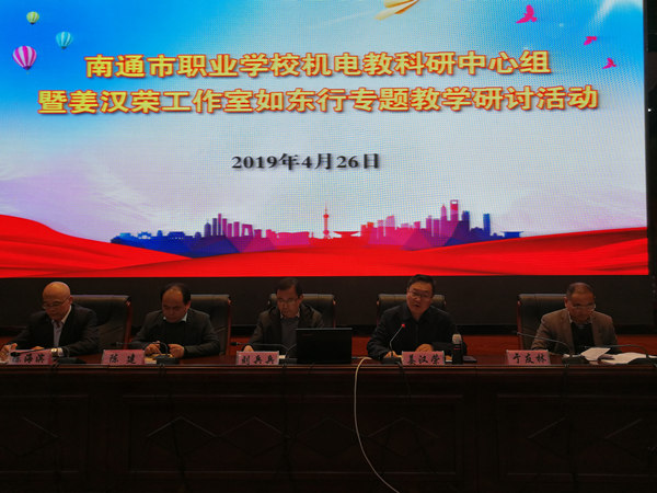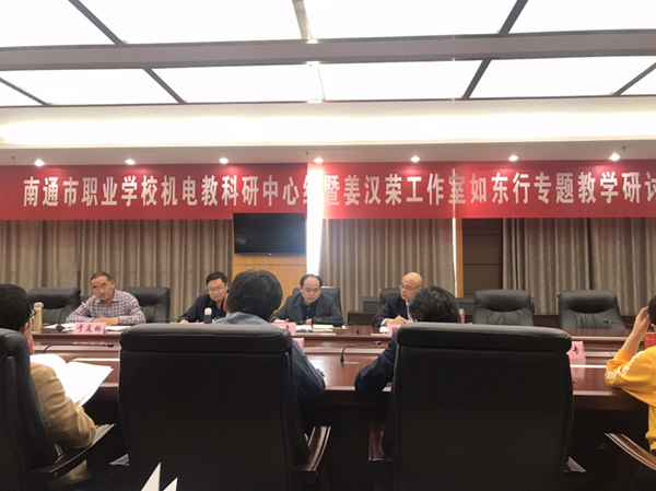 4月25日,工作室领衔人陈海滨主任带领工作室成员顾海娟、于海艳、朱哲贤赶赴如东中专参加南通市职业学校机电教科研中心组暨姜汉荣工作室专题教学研讨活动。 4月25日下午,本次活动的开幕式在如东中专求实楼712会议室举行,活动由中心组副组长海安中专于友林主任主持。如东中专分管领导陈建致欢迎辞。中心组组长通州中专姜汉荣校长对本次活动作了说明。 25日下午14:00—15:35,市机电教科研中心组课堂教学观摩活动分成两组进行,第一组由如东中专王九高、如皋一中专成军民两位老师分别上了题为《两正交圆柱相贯线画法》两节公开课,第二组由如东中专徐西群、通州中专李峰两位老师上了题为《读组合体的三视图》两节公开课。25日下午15:45—16:30,开展了姜汉荣工作室成员教学汇报活动,分别由通州中专李倩老师上了题为《基尔霍夫电流定律》汇报课,如东中专顾丁磊老师上了题为《不倒翁的数控车加工制作》汇报课。 25日下午16:40—17:40,分两组分别由海门中专陈海滨老师、海安中专于友林老师主持了评课议课活动,对相关上课老师进行了点评,指出了不足之处,提出了改进措施。 4月26日8:30-9:15,与会人员针对第一天上课情况开展了集中评课交流活动。我校陈海滨、于海艳老师及兄弟学校的其他四位老师作为听课教师代表发表了自己的听课感言。4月26日9:25-11:05,分别由姜汉荣校长作了《为课程改革:撬起职业学校内涵发展的动力支点》的专题讲座,由陈建副校长做了《合作共生,引领教师专业成长》的专题讲座,讲座活动由陈海滨老师主持。 4月26日11:10-11:45,市教科院院长刘兵兵对本次教研活动做出了点评,并结合最新精神对新一轮省教学大赛进行了指导。最后姜汉荣校长对本次活动做出总结,为本次活动画上了圆满的句号。