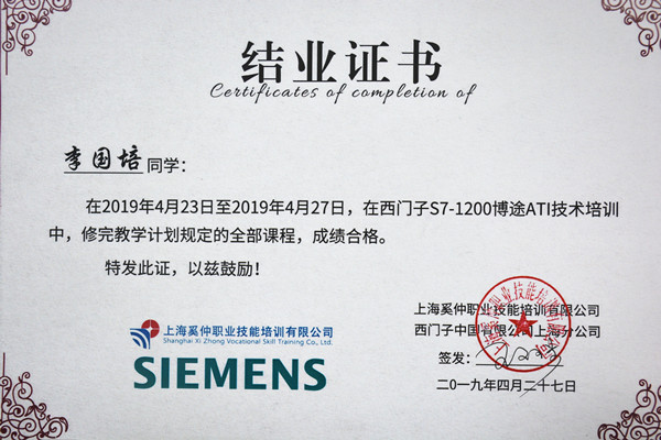 为提高中德机电一体化技术专业教师教学能力,改革课堂教学模式,提升PLC编程与应用教学水平,确保德国工商大会AHK机电一体化考证考试的顺利组织和实施,凤凰职教特邀AHK西门子公司技术专家于4月23至4月27日在上海举办了“西门子S7-1200博图TIA技术”培训,我校教师江锋和李国培参加了本次培训。