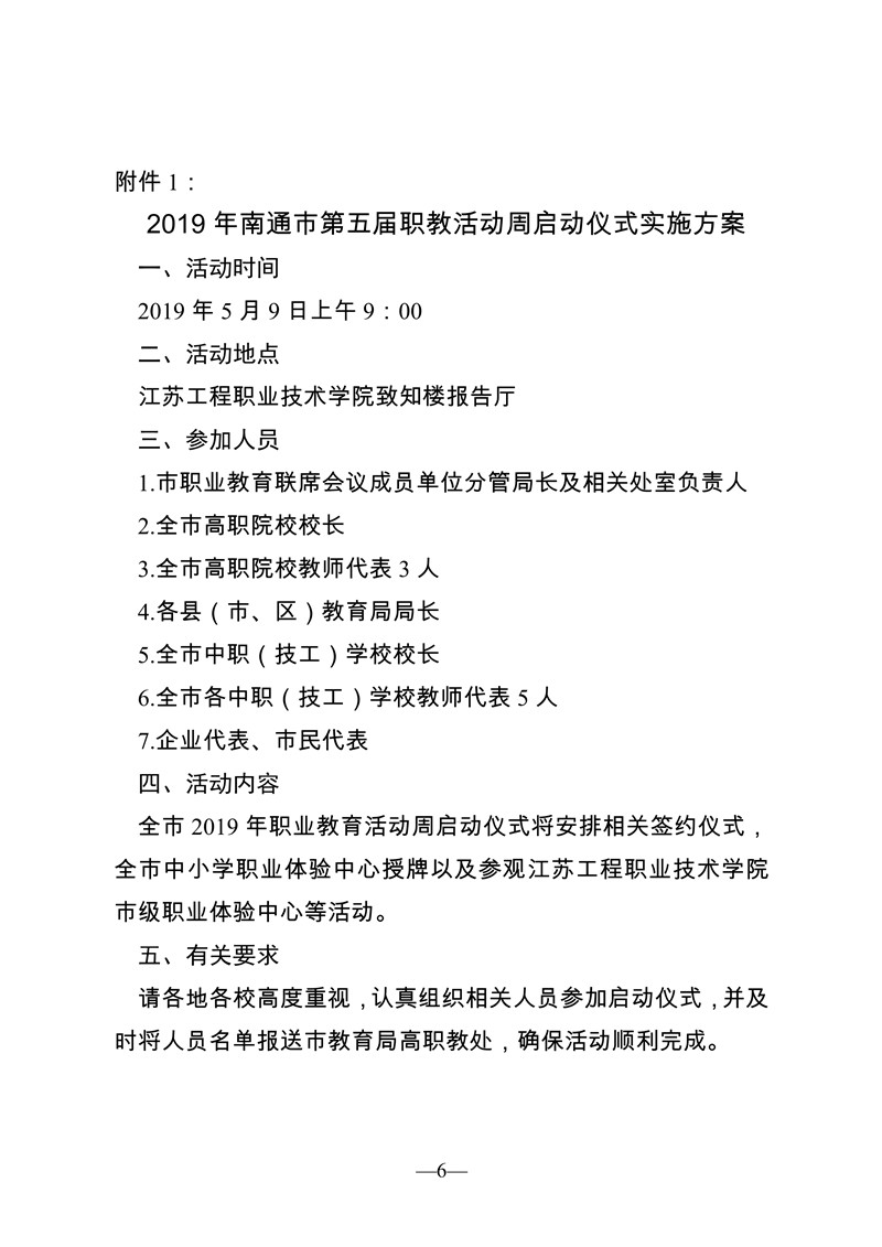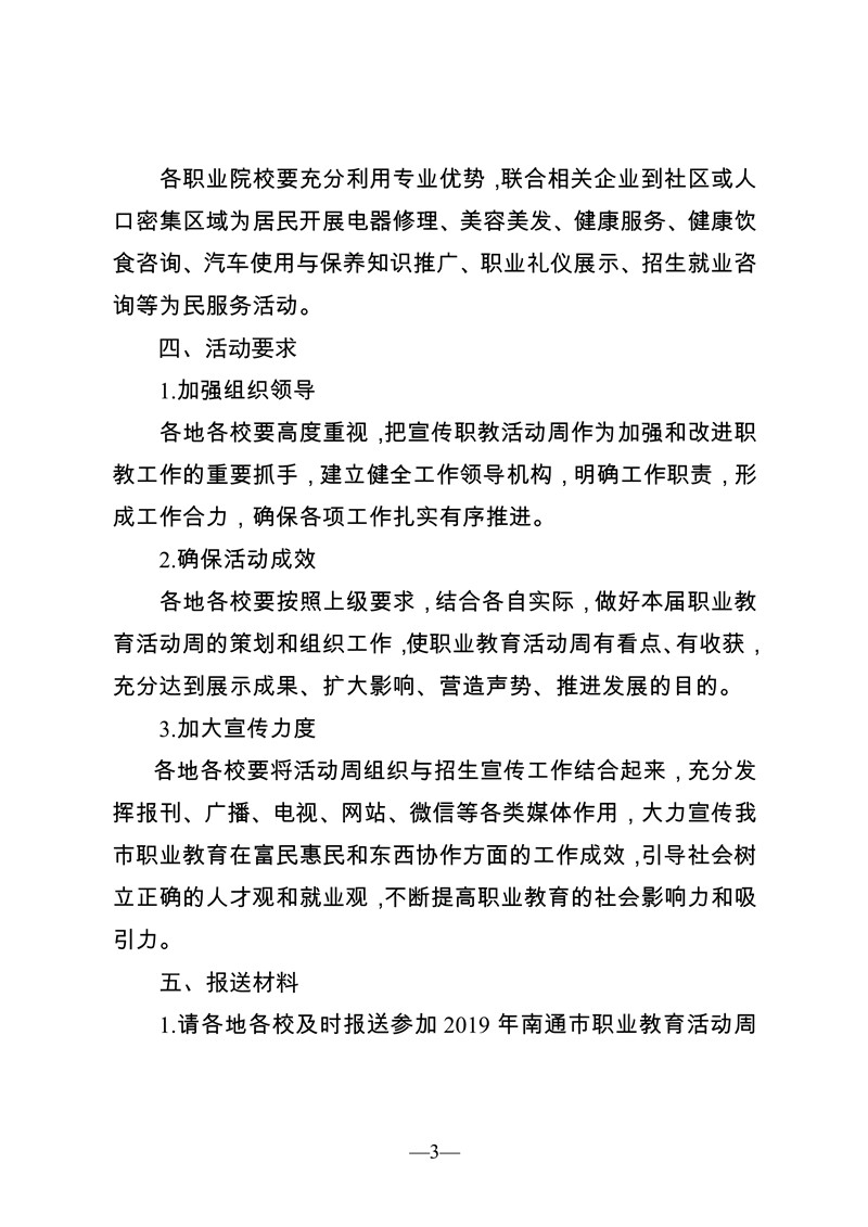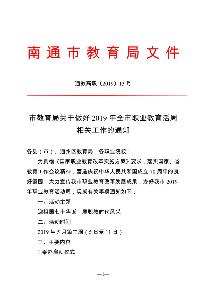 南通市教育局关于做好2019年全市职业教育活周相关工作的通知