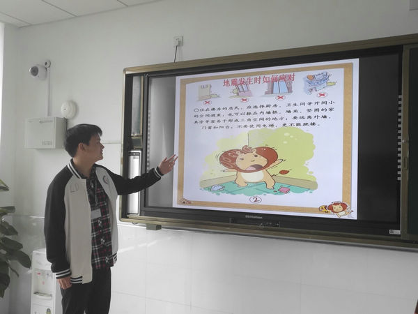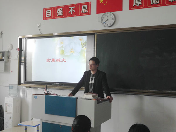 此次评比活动,各班都高度重视,班主任和同学们课前都收集了很多学习素材。班会课上,同学们首先观看了5·12汶川大地震和火灾等相关视频,深切的感受到自然灾害来临时的无情与伤害。接着,各班通过学生展示、视频、知识竞赛等形式向学生宣传普及了一些防震减灾知识,包括地震的成因、震前预防、地震时不同场所的应急措施、震后救护等避震自护的常识和技能。最后,班主任结合即将举行的防震疏散演练需注意的一些问题,通过图片和文字对学生进行了防震疏散演练培训。