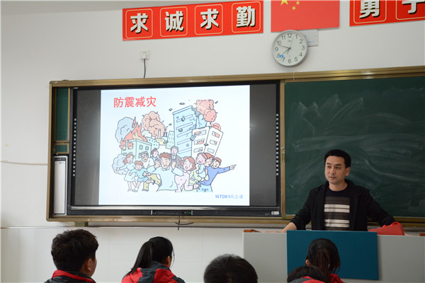 活动中,班主任首先播放了自然灾害地震时的视频和图片,让同学们直观的了解了地震带来的影响。接下来,班主任明确了本次活动的目的是提高学生在地震中的逃生和自救、互救能力和抵御、应对紧急突发事件的能力。然后,班主任通过准备好的ppt向同学们讲述了地震的成因、地震预警机制等知识,以及发生了地震等自然灾害时该如何有效的开展自救,最大限度的保障自己的生命安全。最后,班主任对地震来临防护手段进行了总结,如果地震真的来了,希望同学们头脑一定要清醒不要急,用手先护住头部,迅速远离房屋。万一不幸被埋压,一定要保持冷静,耐心等待救援。