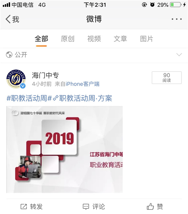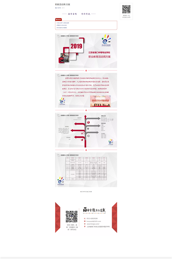 根据南通市教育局关于做好2019年全市职业教育活动周相关工作的通知要求,我校制定了2019年职业教育活动周方案,相关职能部门、各系部进行了各具特色、形式多样、简朴务实的活动。