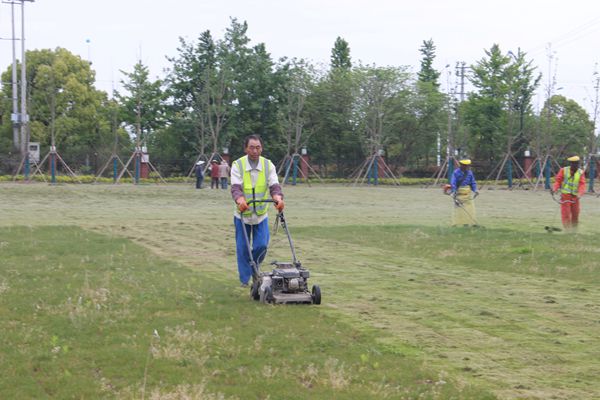 为进一步美化校园,营造一个文明和谐的校园氛围,5 月8 日清晨,后勤工作部积极安排绿化单位来校开展清除杂草、修剪花木草坪、美化校园的行动。 五月份天气逐渐转暖,正是校园绿化养护的黄金季节。后勤工作部副主任施锡斌提早联系相关人员组织对校园内所有绿化带进行护理,有效抓住当前气温回升的有利时机,积极开展树木、草坪修剪、绿地除草、花灌木施肥、病虫害防治等春季绿化养护工作,为全年绿化养护夯实基础。 他们一大早来校,无惧脏累,俯身工作。绿化工人对草坪进行全面修剪,伴着嗡嗡作响的割草机,穿着厚厚的衣裤、系着围裙、戴着防护镜,一丝不苟地修剪苗木和草坪,清除绿篱和绿地内的杂草,以保持校园草坪绿化整齐美观。 通过本轮养护工作,确保了校园绿化成果,下阶段,施主任要求绿化单位持续做好绿地除杂、松土施肥和灌溉及整形修剪工作,努力提升校园绿化视觉效果。(图/文韦彩红)