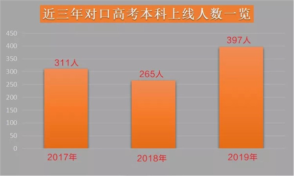 图1:近三年对口高考本科上线人数一览