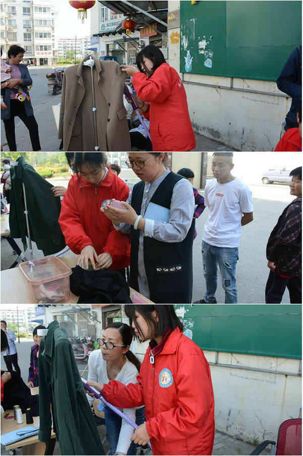 此次为民服务分成四个小组进行,分别为美容小组、手工制作小组、计算机组装与维修小组以及服装缝纫小组。不一会儿的功夫,为民服务小组就迎来了周围居民的驻足。他们有的抱着自己的电脑前来求助,一位女士激动地说,自己这两天正发愁,家里的电脑经常死机,我们的为民服务小组出现得太及时了!也有的拿着自家破损或褶皱的衣服前来,经过服装缝纫小组同学的巧手改造,一件件衣服焕然一新。还有在小区内玩耍的小朋友们很快被手工制作小组自制的可爱手工彩泥制品吸引住了,当收到大姐姐们送出的作品时,他们脸上露出了灿烂的笑容。我们的美容小组当然是受到了一批爱美女士的青睐,美容小组的同学给她们画了一个美美的妆,她们不禁感叹自己原来也可以很美,大大增她们的自信心。一上午的为民服务活动在热闹、欢快的氛围中结束了,社区的居民都流连忘返,纷纷表示期待我们下次的到来!