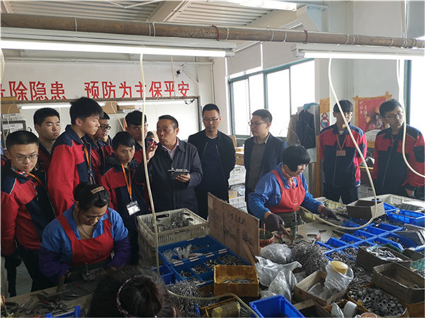 公司董事长施伯新热情接待,他带领学生参观了企业生产车间,讲解了门锁的生产过程。随后企业展厅里,施总为同学们讲述了公司由一个乡镇小企业按照现代企业管理制度展开一系列创新,勇于探索新技术,努力研发新产品,不断拓宽新市场,从而发展到如今全国知名企业的奋斗历程。