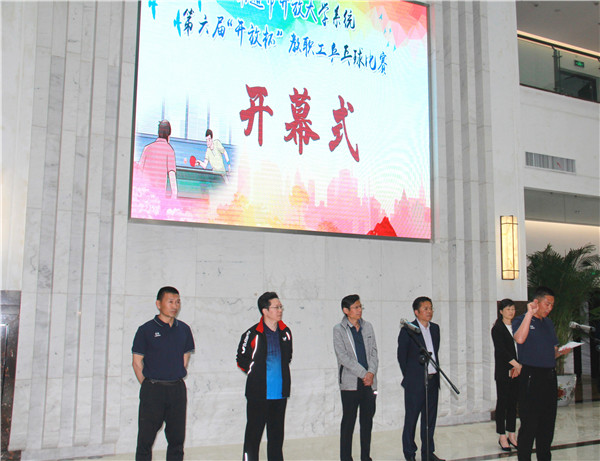 首先举行开幕式。开幕式由副校长茅一娟主持,校长徐忠发言,他代表海门开放大学向前来参赛的兄弟学校运动员表示最真挚的欢迎,接着他从乒乓球运动的作用谈起,讲到“开放杯”教职工乒乓球赛的意义,认为乒乓球这项“全身运动”,燃烧的是大量“卡路里”,带来的却是“健康”和“快乐”,认为这样一个交流平台,给了大家一个“以球会师”、“以球会友”的机会,很有意义。选手代表和裁判员代表相继发言,表决心、明态度。最后,南通开放大学党委书记张建锋宣布比赛开始。