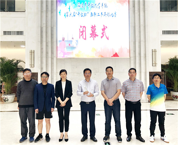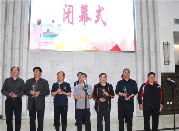 赛事于当日下午17:00结束,本届比赛裁判长姜雄飙宣读比赛结果,南通开放大学党委书记张建锋、校长陆永明,海门开放大学校长徐忠,南通开放大学副校长陶建、景圣琪为获奖代表队颁奖。闭幕式上还宣布了下一届承办学校、举行了会旗交接仪式,通州开放大学副校长季春雷代表下一届承办方作了简短发言。