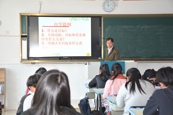陈老师围绕教学目标对教材内容进行了合理整合,运用现代化教学手段,通过任务驱动、自主学习和合作探究,从哈佛大学对毕业生25年发展轨迹的跟踪调查入手,初步激发学生对人生目标重要性的思考。在自主学习的基础上,层层推进,环环相扣,引导学生以哲学智慧理解动机、目标和历史规律的关系,自然规律与历史规律的内在联系。通过案例分析入探究明确人生目标对人生前进、人生发展、人生成功的重要意义。最后,还设置了课堂检测和课堂总结环节,对学习中出现的共性问题进行了剖析和拓展。