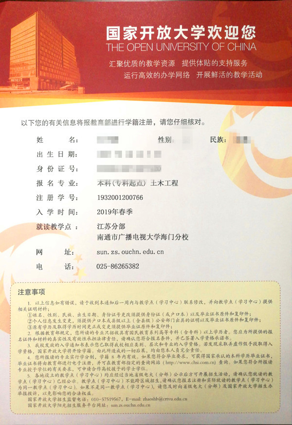 根据国家开放大学2019春季入学资格审核方案的通知精神,在省校现场审核的基础上,4月下旬,国开总部又对各办学点新生进行入学资格复查,最终,我校56名开放教育学员喜获国家开放大学入学通知书。