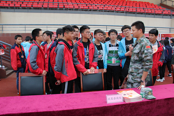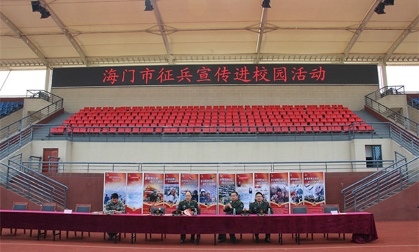 为进一步提高师生对国防知识和大学生征兵政策的了解,积极动员大专生参军入伍,5月9日下午14点整,我校在学校南操场举办了“海门市征兵宣传进高校”活动。海门市人武部军事科科长洪波、三厂工业园区人武部部长张杰、临江新区人武部副部长杨天笑、政治工作科干事江森、优秀民兵骨干宋勇帅一行为我校大中专系部 15 级学生进行了征兵宣传。 活动通过摆设宣传展板、分发宣传手册、专题演讲报告等形式,向学生详细介绍征集对象、条件、报名时间与流程,着重讲解当今国防建设与军队建设对高素质人才需求的迫切性以及适龄青年积极应征入伍、履行兵役义务的必要性。 海门市人武部军事科科长洪波以海门籍在外优秀参军人员的优秀事迹鼓励我校大中专学生积极相应国家号召,用崇高的理想实现新时代青年的人生价值。 宣讲结束后,同学们纷纷查看宣传资料,就自己感兴趣的事项向前来宣传的干部进行咨询。洪波科长一行热情解答了学生们普遍关心的服役待遇、退伍补偿及今后在学业、择业上的优惠政策。(黄 娟)