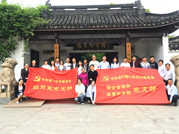 为深入学习贯彻党的十九大精神和习近平新时代中国特色社会主义思想,创新主题党日活动的内容、形式、机制,推动党的组织生活“党味、鲜味、回味”有机融合,让支部活起来,党员动起来,增强组织生活感召力、吸引力、影响力,5月14日下午,海门中专经贸系党支部、海门农行综合支部,支部共建、联合开展以“传承张謇精神 坚守教育情怀”为主题的党日教育活动。