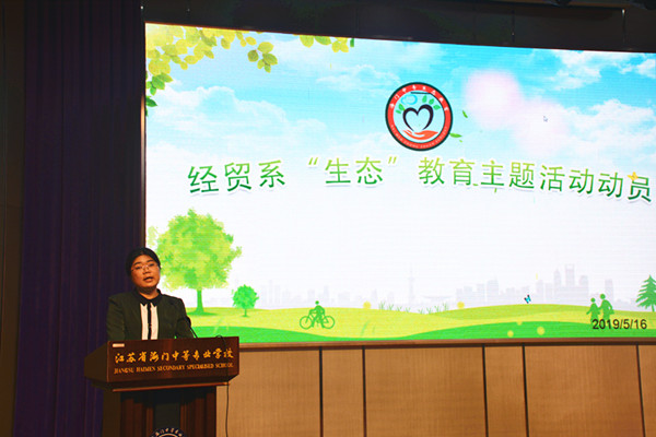 最后,施主任还向全体经贸学子进行了学校“大生教育”德育品牌建设之“生态”教育主题活动的动员,介绍了我们经贸系“大生教育”的德育品牌,五生行动之“生态”教育的LOGO,并要求全体经贸学子都要用自己的力量爱护地球、保护生态平衡。