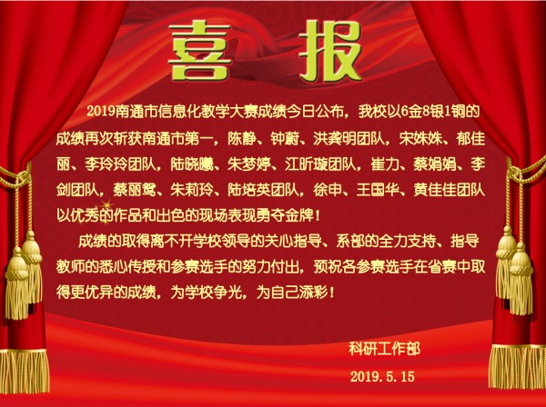 我校再次斩获南通市信息化教学大赛第一