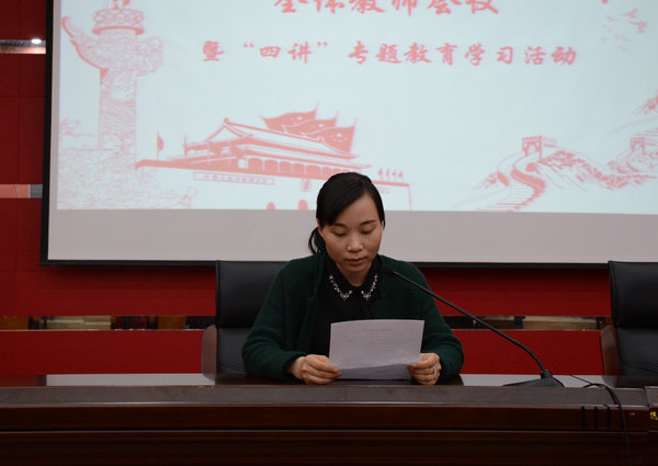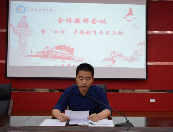 为促使全体教师心往一处想、智往一处谋、劲往一处使,开创风清气正、团结和谐、心情舒畅的工作新局面,信息系于5月21日上午9:20在H楼报告厅召开了全体教师会议暨“四讲”专题教育学习活动。