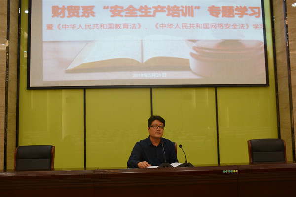 为广泛宣传普及安全生产和应急救援知识,进一步提高教职员工全员安全素质,提升安全风险防范和应急处置能力,按照南通市安委办《关于开展“安全生产培训教育双月”活动的通知》精神和海门市安委办有关要求,根据学校学生工作部统一部署,财贸系于5月21日上午9:30,在謇公搂名匠报告厅组织开展了安全生产培训专题学习暨学法活动。