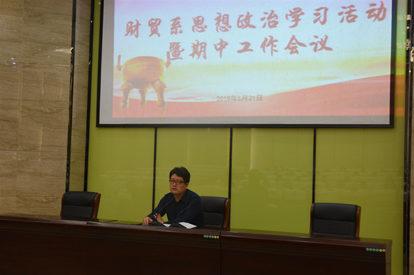 为深入学习贯彻习近平新时代中国特色社会主义思想和党的十九大精神,激发广大教师的家国情怀、使命担当,根据市局和学校统一安排和部署,财贸系于5月21日上午9:40,在謇公楼名匠报告厅召开思想政治学习暨期中工作会议,系部全体教师准时参加会议,会议由王飞主任主讲。