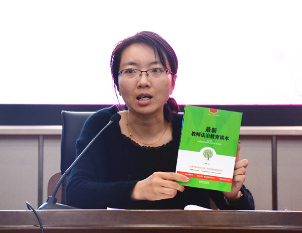 吴樱樱主任对教学安全、实训安全、宿舍安全等提出了具体要求。吴主任强调,严守规矩方能确保安全,全体教师要进一步加强责任意识,学法、懂法、守法,用法律和制度捍卫安全。随后,吴樱樱主任组织教师学习了《最新教师法治教育读本》。吴主任依据职业教育特点,结合典型案例,围绕依法治校的内涵和外延、学生伤害事故预防与处理、教育法律救济、教师必备法律常识等重要内容展开阐述。教师要把依法从教作为自身建设和发展的基本理念,创造契合法治原则和法治精神的育人环境,促进学生的全面发展。