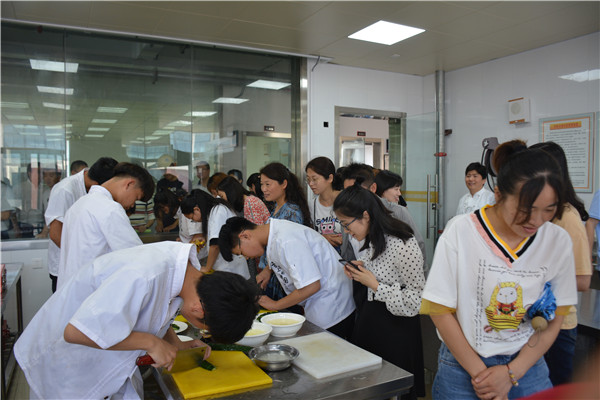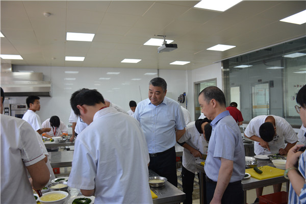 在党委书记宋健、行政工作部主任马建国、教学工作部副主任纪红兵的陪同下,张书元一行参观了我校服装、数控、机电、烹饪、汽修、建筑施工等实训基地,接着又走进机电系教学办公区域,参观了报告厅、教师健身室和办公室等场所。