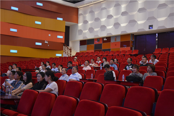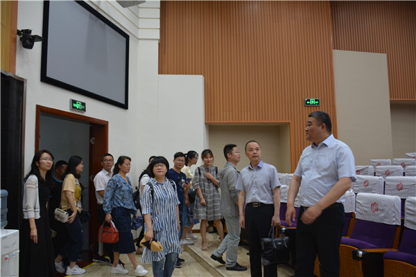 在謇公湖科教大会堂,张书元一行观看了学校的两部专题片,对我校的办学情况及发展业绩有了更加全面系统的了解。