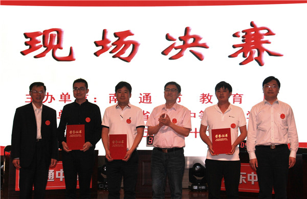 经过一个半小时激烈角逐,最终如皋第一中等专业学校、海门中等专业学校、如东中等专业学校获团体一等奖,其余五所学校获团体二等奖,同时我校获优秀组织奖,我校王天仪同学获得最佳现场表现奖,我校茅健亮、如皋第一中专的陈宏、如东中专的崔宁琳三位老师获优秀指导老师奖,个人最佳理论选手奖由南通卫生高职校石益纯同学获得,姜学勤、曹慧忠、丁顺前为获奖团体和个人颁奖。(黄蓉蓉)