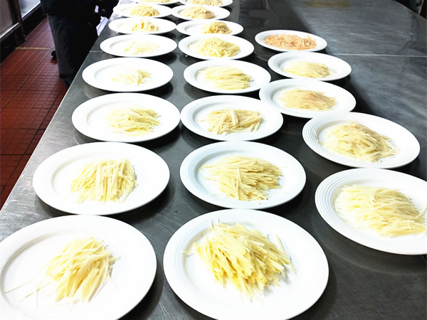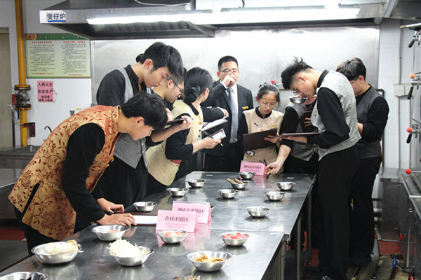 本次考核主要考察学生的烹饪原料知识和刀工技能,要求学生在15分钟内识别十二种调味品和十五种食材,切配规定数量的土豆丝。企业师傅根据完成时间和完成作品效果现场评分。同学们根据跟岗实习时候学到的知识与技能,顺利完成了本月的企业考核,顾天宇,丁凯阳,孙楠同学获班级前三名。(蔡建峰)