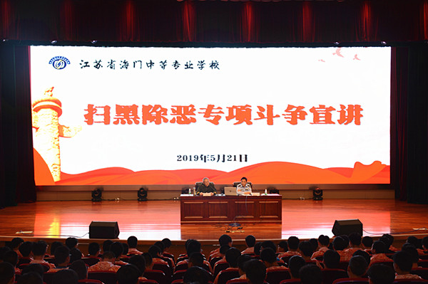 为深入推进我校扫黑除恶专项斗争工作,打造平安校园,进一步树立全体师生的法治观念,5月21日下午2点,原市政法委副书记、公安局副局长周振祥和原海门市公安局治安大队教导员张宏兵在謇公湖科教大会堂为我校师生做了一次以“聚力‘扫黑除恶’,攻坚平安海门”为主题的法治教育宣讲。 原市政法委副书记周振祥主持了整场宣讲活动。周书记介绍了开展扫黑除恶专项斗争宣讲活动的背景,分析了“扫黑除恶”与法治教育的关系,阐述了学生提高法治观念,打造平安校园的意义。 张教导员则从扫黑除恶的原因、目的意义和现阶段成果三个方面为我们师生进行宣讲。张教导员首先为我们介绍了我国开展扫黑除恶专项斗争的初衷和背景,讲解了扫黑除恶专项斗争的战略部署,阐释了扫黑除恶专项斗争的指导思想和重要意义。随后,他以鲜活的事例为我们普及了专项斗争的重点内容,以典型案例的讲述为我们详细介绍了在学校领域十个方面的斗争内容。特别对学生比较模糊的“黑社会组织”“恶势力”及“软暴力犯罪”进行了明确的讲解。最后,张教导员为我们介绍了现阶段扫黑除恶专项斗争的特点,并用一系列数据展示了专项斗争的成效,同时也指出依法严打再深化是扫黑除恶专项斗争下一阶段的工作重点。 本次宣讲会的召开,不仅使我校师生进一步了解了扫黑除恶专项斗争的必要性,而且更加深入透彻地理解了“校园黑恶”的危害性,切实提高了我校师生法律意识和自我保护能力。(黄 娟)