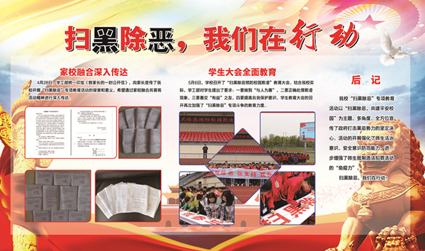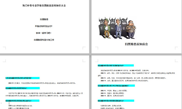 我校自开展扫黑除恶专项教育活动以来,通过一些列的活动在师生群体中进行了宣传教育,取得了一定的成效。近期,在校长室的统一部署下,我校的扫黑除恶专项教育正在强力推进中。 思政大会,深入部署。5月17日下午,海门中专在謇公湖科教大会堂召开本学期第三次思想政治学习暨期中总结大会。校长徐忠在大会上再次明确了我校开展扫黑除恶专项教育的重大意义和工作目标,并结合学校实际,对我校扫黑除恶的工作重点进行梳理和布置,对全校教职工提出了明确要求。 全面学习,扎实推进。5月18日,在校长室的指导下,学生工作部牵头组织了全校教职工进行学习。学工部组织专人对扫黑除恶知识进行梳理,形成系统性文字材料——《海门中等专业学校扫黑除恶宣传读本》《海门中等专业学校扫黑除恶知识大全》,采用集体学习与分散学习相结合、知识讲座与读本学习相结合的方式,以学习的常态化、常规化将我校扫黑除恶专项教育活动扎实推进。 全民测试,夯实巩固。5月28日,在学工部的牵头下,各处室、各系部分别于上午大课间组织全体教职工进行扫黑除恶专项斗争知识测试。测试以笔试形式进行,测试试题由专人从题库抽取,题型多样,满分100分。各系部严格组织,规范检测;每个教职工严肃态度,认真答题;答题结束后,由专人进行批阅,并将成绩汇总上报。 扫黑除恶专项斗争是我校一项重大政治任务,在前期大力宣传、稳步推进的基础上,我校有组织地深入师生,积极主动摸情况、找线索,确保专项斗争有重点、有步骤地有力有序推进。(黄 娟)