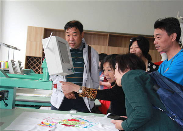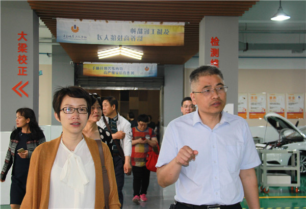 客人们深入学校实训基地,依次参观了服装、数控、汽修、烹饪、建筑等实训中心,他们走进各个功能室,看学生实训、赏学生作品,向专业教师询问,和新疆支教老师攀谈,对电脑绣花、汽车钣金、各色烹饪表现出浓厚兴趣,他们对学校科学实用的专业设置、高端现代的实训设备、理实一体的教学模式大为赞叹。参观过程中,周桂岐向来宾介绍了学校近几年硬件建设、内涵建设情况,并将我校的经验与做法与大家作了分享。来到机电系,客人们参观了系部会议室、报告厅、健身房、教师办公室及教室等,完善的设施、周到的考虑令客人惊叹,学校人性化的管理再一次被点赞。随后,一行来到千人报告厅,观看学校专题片《先锋》,全面了解学校办学历史和发展业绩。