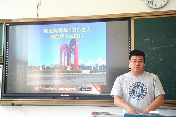 本次班会活动,旨在提高学生们的环保意识,使每一个学生都成为环境保护的宣传者、实践者和推动者,低碳减排、绿色环保,为携手共建我们美丽的小海门,绿色理念我践行,环保先行!(陈瑶)