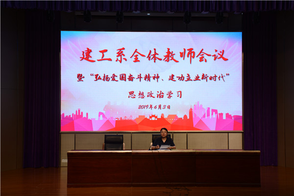 离学期结束只有短短的一个月时间,为更好地开展下阶段工作。6月3日下午15:40,建工系在文苑报告厅召开了全体教师会议暨“弘扬爱国奋斗精神,建功立业新时代”思想政治学习活动,全体教师参加会议。