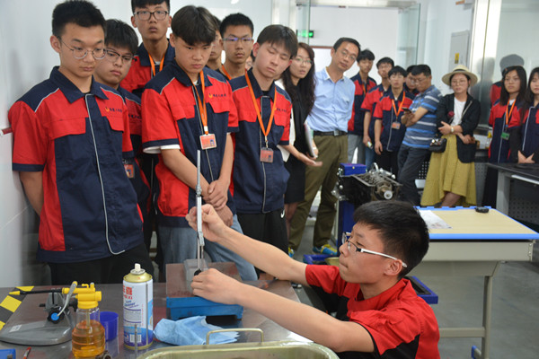 会后,吴樱樱主任带领全体参赛师生到汽修车间观摩了汽车机电维修兴趣小组成员的技能展示。熟练的技术、迅捷的动作、坚毅的眼神,让全体参赛师生赞叹不已。参赛选手纷纷表示,要以榜样为示范,全力以赴攻坚克难,奋力夺取技能大赛全面胜利。(倪海峰)