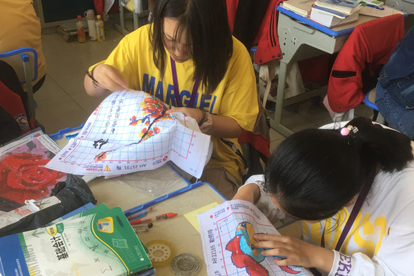 社团活动地点就在学校温馨的教室,学生通过观看十字绣教程视频,根据老师对不同的针法的讲解,快速掌握绣十字绣的基本方法。每节课,在学完相关的针法后,社团成员们会安静地坐在教室里,拿起精心挑选的绣布,认真地完成作品,此刻她们脸上闪耀着自信的光芒。在完成作品的过程中,学生们也会互相交流、互相帮助、互相欣赏,共同努力不断提高。