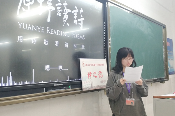 每次社团活动之前,老师事先都选定一位诗人的作品让学生进行欣赏,每一位学生都能够通过“时常切磋”、“实战演练”,从而有所获、有所得,老师对每次上台表演作出评价和肯定,学生也在自我评价、互相评价中有所收获和进步。