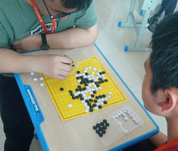 在每周周三、周四下午的第三节社团课上,祝老师以知识讲座、视频讲解、经典围棋赛事欣赏、现场对弈等各种活动形式,教授学生从认识围棋开始,先认识围棋棋盘、棋子,然后教下棋的规则,棋子的“气”以及“气”的计算,再学围棋的基本术语,活棋死棋的界定及最基本的死活知识,最后到吃子的技巧,一步一步引领学生步入围棋的殿堂。带领学生感受围棋的魅力和博大精深。许多学生已经入门了,也可以说已经初步达到了预期的目的。