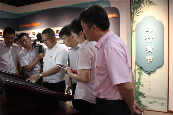 6月19日上午9点30分,我校举行党建文化活动馆和廉政文化教育馆启用仪式。校长徐忠,校党委书记宋健,副校长周桂岐、茅一娟、王小辉,学校各基层党支部书记以及行政支部全体党员参与本次启用仪式。党建文化活动馆和廉政文化教育馆选择在七一前夕隆重开馆,也是向党的98岁生日献上一份特殊的礼物。 启用仪式 庄重简朴 启用仪式由党群工作部主任洪龚明主持。在庄严的国歌声中,仪式正式开始。校党委书记宋健首先为仪式致辞,宋书记指出,党建馆和廉政馆的落成启用,让我们增加了一处全校党建和廉政文化学习之所,多了一面时刻反躬自省的明镜,我们要充分发挥好这个平台的教育、展示和启迪作用,秉承“永远领先一步”的学校精神,进一步高举“新思想”的旗帜,紧密团结在以习近平同志为核心的党中央周围,在上级党组织和学校党委的坚强领导下,坚持围绕中心,自觉服务大局,充分发挥党建“+”优势,自立自强、追求卓越,形成党建特色,努力促使学校高质量发展走在前列。接着,校长徐忠和党委书记宋健为两馆正式揭牌,党建馆,又名砥砺厅,取“不忘初心,砥砺前行”之意。廉政馆又名“润泽厅”,取“润物无声,春风化雨”之意。随后,徐忠校长宣布“海门中专党建文化活动馆和廉政文化教育馆正式启用”,和宋健书记共同打开大门。 宣誓参观 党性熏陶 全体党员进入砥砺厅参观学习。进馆后全体同志在宋健书记的带领下集中在宣誓墙前庄严宣誓。誓词嘹亮、决心依旧,不忘初心,恪尽职守。接着,随着杨滨榕老师的讲解大家参观了整个党建馆,馆内布置了庄严的誓词墙、大气的浮雕墙,还有党的制度、党员承诺、先锋堡垒、红色引擎、缤纷群团等成绩展示,以及党史和十九大专题,里面还有供党员同志学习的一机拖四的多媒体展示台。全体同志在聆听中观看,在观看中学习,在学习中砥砺,在砥砺中净化灵魂。 崇廉尚洁 涵养作风 接下来党员们来到位于A楼6楼的廉政文化教育馆,大家有序进行参观学习,杨云主任为大家作简单的介绍。从进门莲花地投,到警示墙、学校廉政活动的剪影、廉政文化的多媒体展示,处处彰显出我校作为江苏省廉政文化示范点对于廉政文化教育的重视,“润泽厅”通过丰富的廉政文化向全体党员传达出崇廉尚洁的理念和信号。党员同志们忽而驻足观看,忽而凝神思考,忽而探究讨论,耿耿丹心扬正气,铮铮铁骨扫歪风,每个党员同志都表示要保持政治本色,清正廉洁作表率。 本次两馆启用仪式圆满结束,简朴而庄重。参观结束后,大家纷纷赞叹,赞叹的不仅仅是形式,更是形式背后“党建强引领教育强”理念的认同。“红色校园”激活了海门中专内的每一个党建“细胞”,实现了党建与学校文化、教育教学、学生德育的深度融合,海门中专党建品牌正在加速形成。相信在红色思想的熏陶下,每一个海专人都会竖起大拇指,骄傲地说:“强校有我们”!