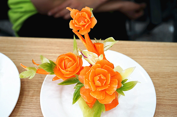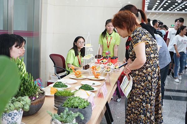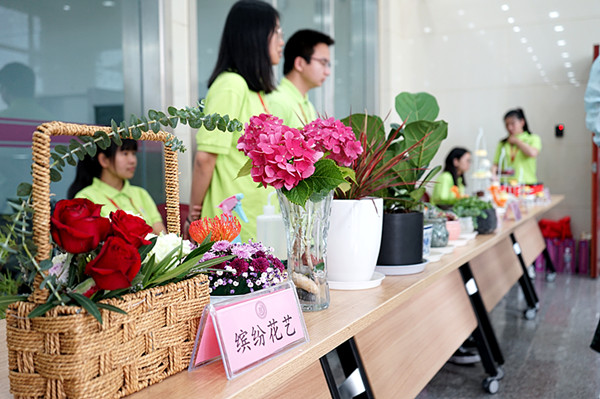经贸系会计、烹饪和农学专业的技能展示安排在G3楼大厅。学生们严阵以待、认真负责,早早就在大厅操练着自己的技艺。“点钞、小键盘和珠算”是会计专业学生的看家本领,学生的手指飞快娴熟的在专业用具上飞舞,是那么的自信和神奇;烹饪专业学生的冷盘、食品雕刻和甜品,是那么诱人,色香味俱全,家长们都笑着说,孩子们若能学成而归,父母是会有何等的幸福啊!农学专业的学生在那摆弄着盆景和花艺,几株普通的花穗,经学生手这么有选择的翻插,真就成了别具一格的艺术作品,带着学生自己的创意和审美还有爱,真真让人徒生喜爱、爱不释手!毕业生和家长们都被经贸学生的技能打动了,他们不时的询问着有关专业方面的常识和升学前景。