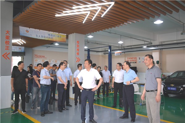 朱毅民一行参观了我校实训区,观看了学校的专题宣传片,接着又举行了近两个小时的座谈活动。在认真听取宋健书记从办学情况、办学成绩、办学思路及工作困惑四个方面所作的简要介绍之后,座谈双方围绕课题重点展开了深入细致的调研问答。