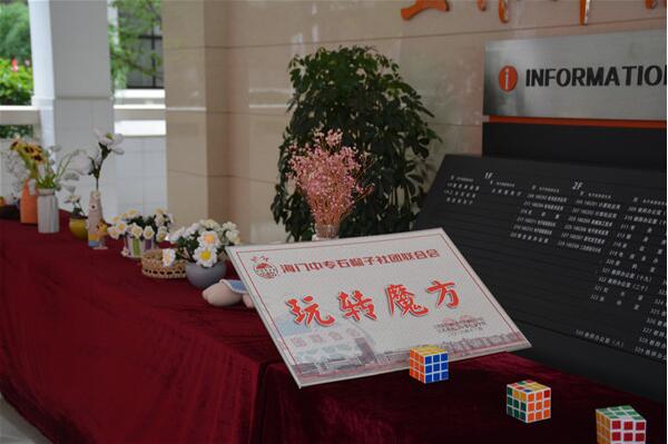 特色社团成果展示区,我系社团的展示形式多样,内容丰富多彩,吸引了众多家长和学子的驻足和喝彩。一支毛笔、一张宣纸,书法社团的同学们泼墨挥毫,笔走龙蛇,书法作品刚劲有力,飘逸洒脱;灵动的手指与小小魔方的完美融合,让你眼花缭乱之余惊叹魔方社团学生的技艺;DIY手工社团琳琅满目的各种造型让人眼前一亮,如此精致,如此逼真的手工作品让你享受视觉盛宴。