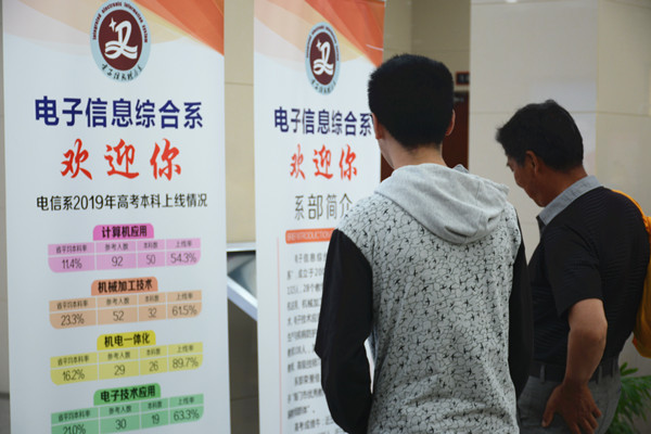 办学特色宣传咨询区,我系对口单招连年攀高的本科录取率吸引了众多家长和学生前来咨询,系部领导和志愿者为前来咨询的家长和学生细致耐心地解答着学校的招生政策、招生计划、专业设置、志愿选报、录取办法等问题。不少家长带着孩子在心仪的展位前,咨询我系的专业特色、师资力量及就业前景等问题。