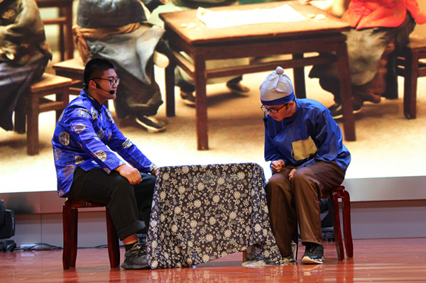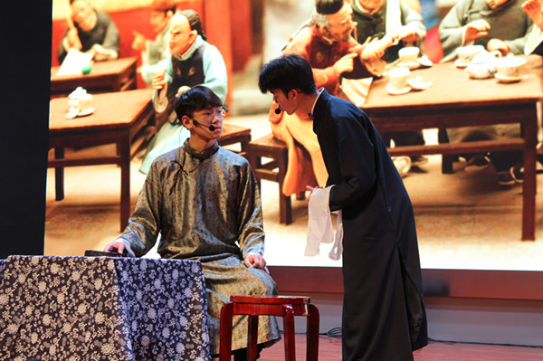 跟他配戏的小伙伴,是曾经讷讷不敢言一说话就脸红的“王利发”,这一次,“豁出去”演了一个“满场飞”的小掌柜,还想尽办法替同伴“打掩护”。